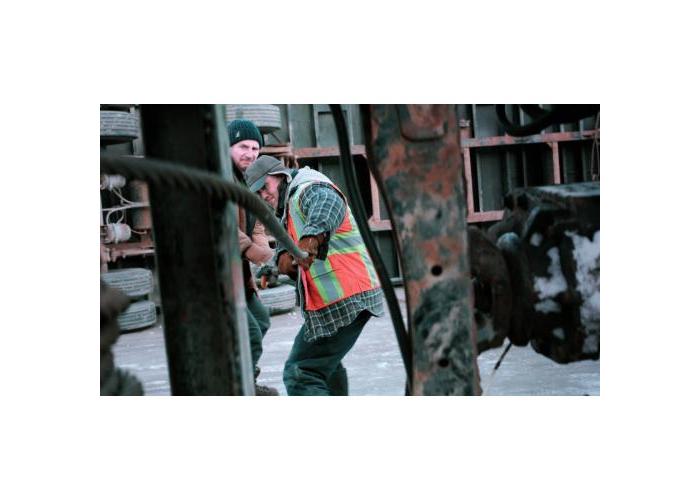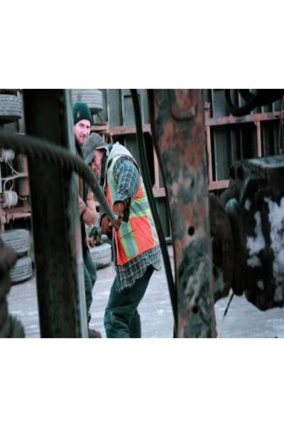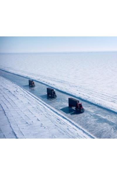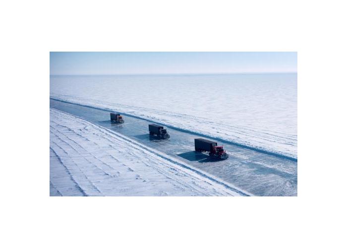 해빙에 접어든 아이스 로드를 횡단해 구조용 파이프를 운반하는 것뿐.